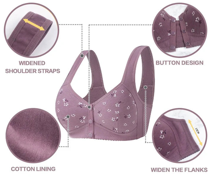 - From the half cup to the full cup, you put all the effort and care into the improvement and comfort of the bust. The Front Buckle Bra provide instant sculpting of breasts shape & contour against sagging, creating a perkier & smoother shape with full support.